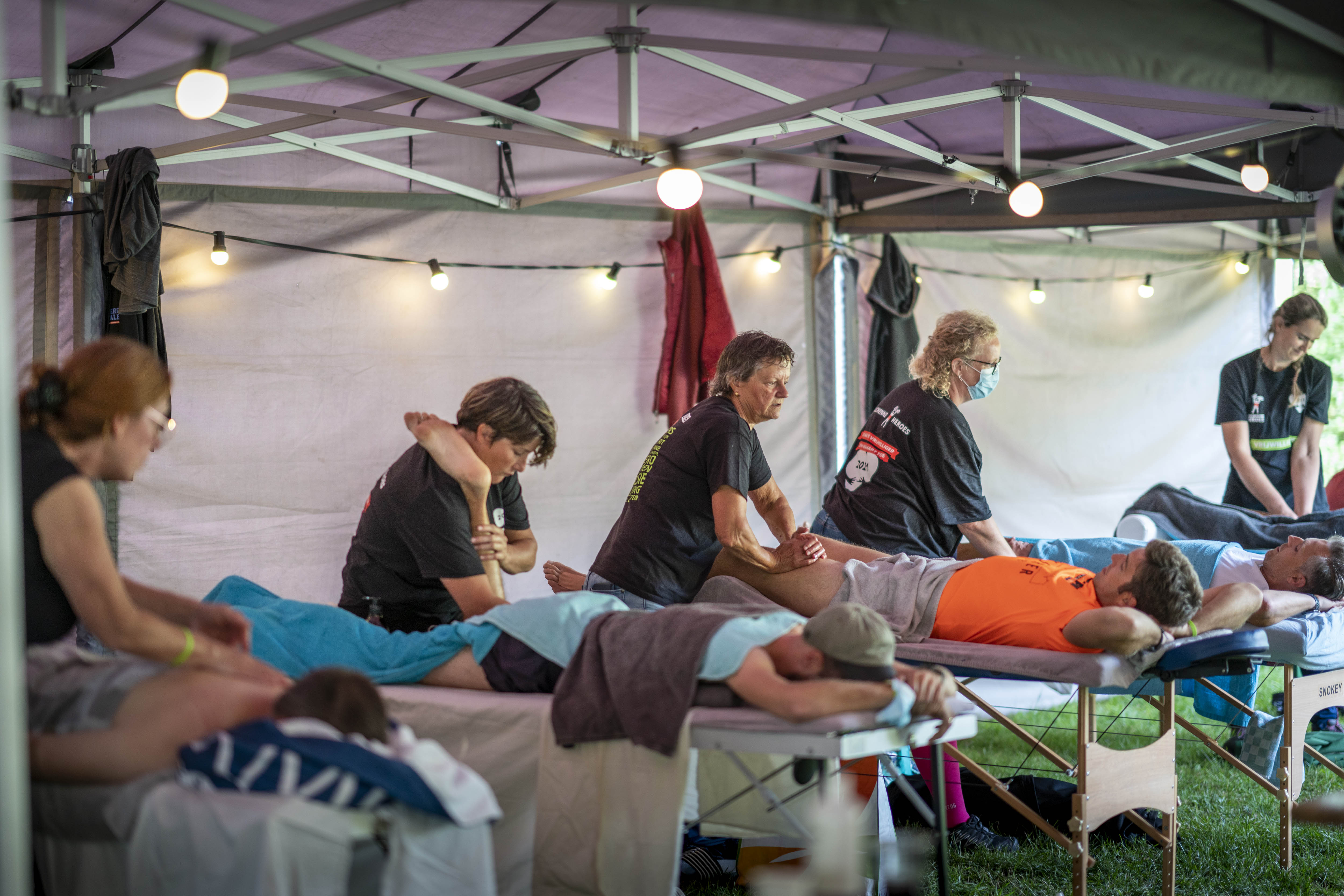 Het massageteam bestaat uit professionele masseurs (fysiotherapeuten / sportmasseurs). Gedurende de week krijgt iedere deelnemer twee massages. Op checkpoints werkt het massageteam in shifts.