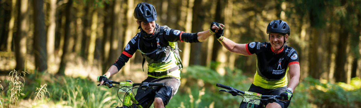 Jij fietst straks de spectaculaire mountainbiketracks in een prachtig shirt. Het shirt ontvang je bij de registratie voorafgaand aan Duchenne Heroes.